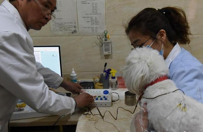 来自中新网的消息:2月28日,重庆渝北一家宠物医院内,63岁的赖勤农副教授正在给狗狗做针灸调理肠胃。据了解,针灸不仅可以为人治病理疗,在宠物身上也同样适用,而这种中医疗法的专业名称为中兽医。