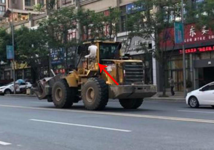 通过现场图片可以看到,白衣男子坐在挖车左侧,离地面大约两米左右的距离,驾驶室内隐约看到有两人,疑似驾驶室内坐不下,白衣男子才坐在外面。