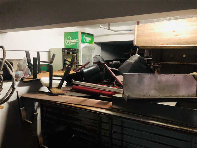 车库变成烧烤摊仓库 堆满杂乱的餐饮用具