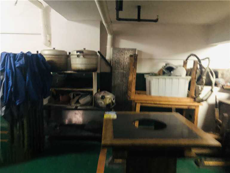 通过现场图片可以看到,车位里几乎堆满了杂物,雨棚,凳子数张,两口大锅还有一张方桌摆在正中间。