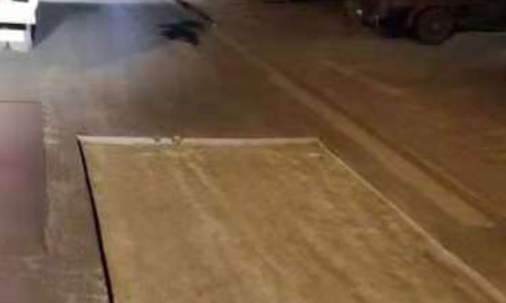 通过现场图片可以看见,男子摔倒在地,可以清晰的看到路面被挖低了一层,路面凹凸不平,周围光线较暗,一旁也没有立标识牌,路过的车辆很容易忽视掉该区域。