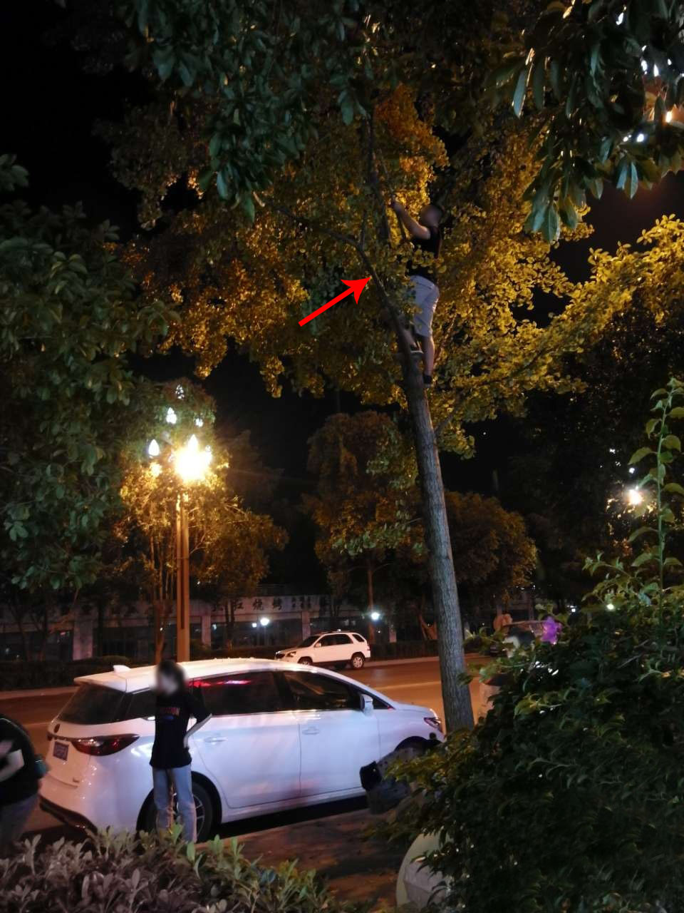 男子徒手爬上树数米高摘白果 全然不顾危险