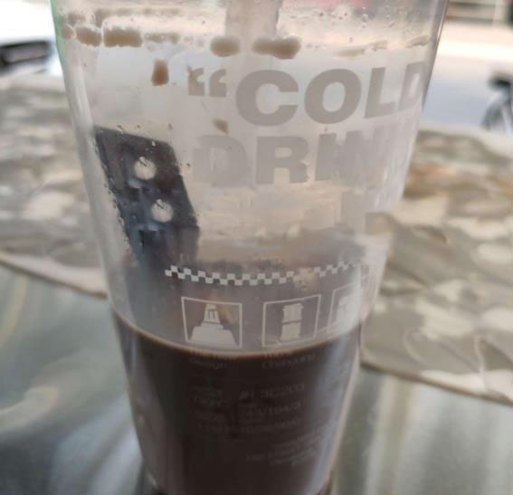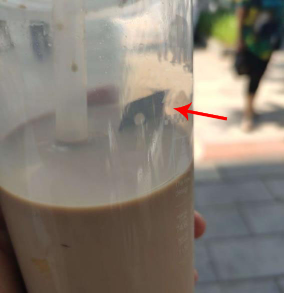 食客买了杯奶茶 喝了一半发现有个生锈的刀片