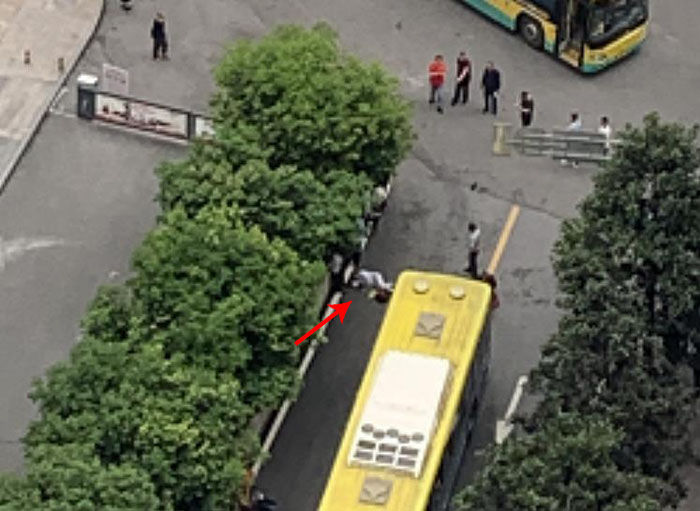9月1日,重庆涪陵,有目击者称,在香江豪庭公交首末站进口处附近,发生一起车与人的擦挂事故,一名穿花衣的老太从金科世界走廊乘坐电梯下来,准备去香江豪庭公交首末站坐公交车,走在中山路与进站公路分叉路口转弯处,被行驶进站的公交车尾部擦挂,老太背的背包被公交车尾部擦挂挂断,老太被绊倒在地,脚背不幸被挂了一个洞,鲜血直流,驾驶员立即招来一出租车将其送往医院。