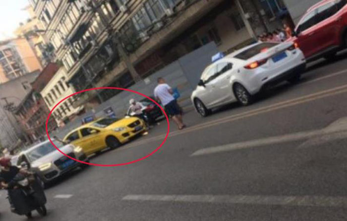 9月11日,有目击者称,重庆九龙坡区花半里附近,发生一起交通事故,当时正是晚高峰,一名外卖小哥骑着摩托车送外卖,被一辆出租车撞倒在地,送餐箱里的餐掉落了出来,随后外卖小哥拨打了报警电话。