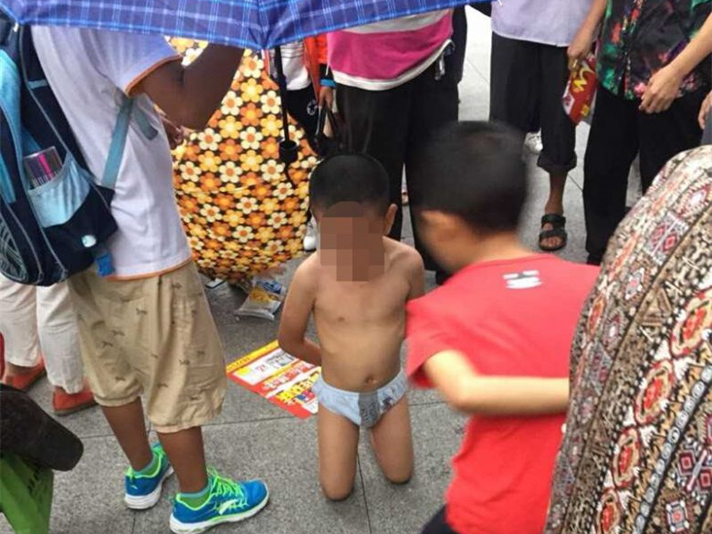 吴先生十分好奇,到底男童是犯了什么过错,居然将他衣物脱掉,赤裸这跪在大街上?