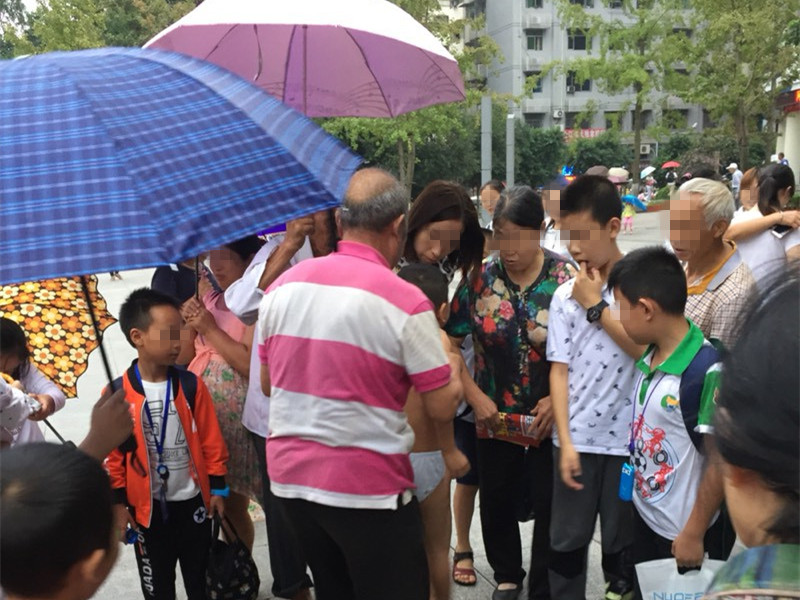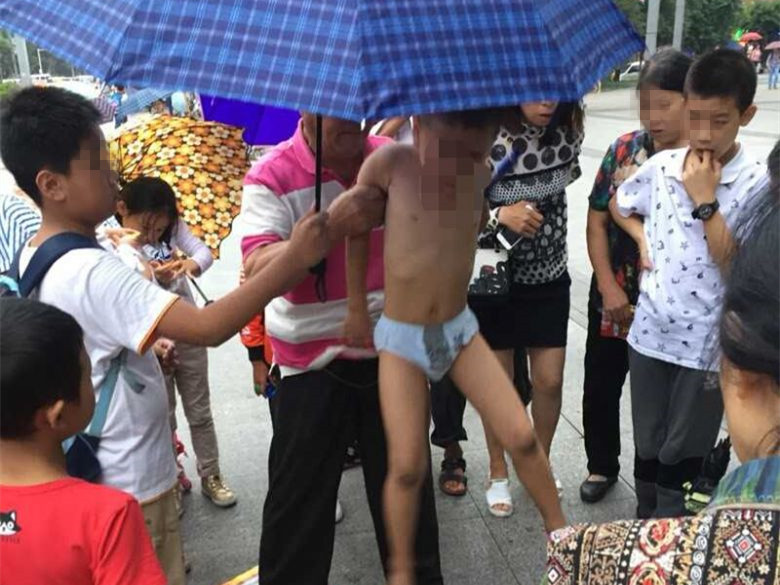 男童雨中当街赤裸下跪 路人纷纷打伞相助