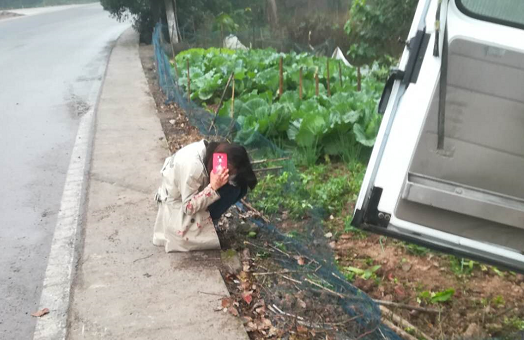 一位快递小哥刚好从这里经过,他立即停稳车辆,将一位在副驾驶室的护士救了出来,扶到一旁道路边。