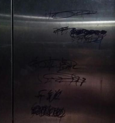 而且,电梯里黑色漆笔写下的小广告或乱涂乱画的笔记很难清除。陈女士之前看见清洁阿姨清洗了好半天,才将一串电话号码清理干净。经常才清理完就又出来了,这些写广告的人也是十分“执着”。