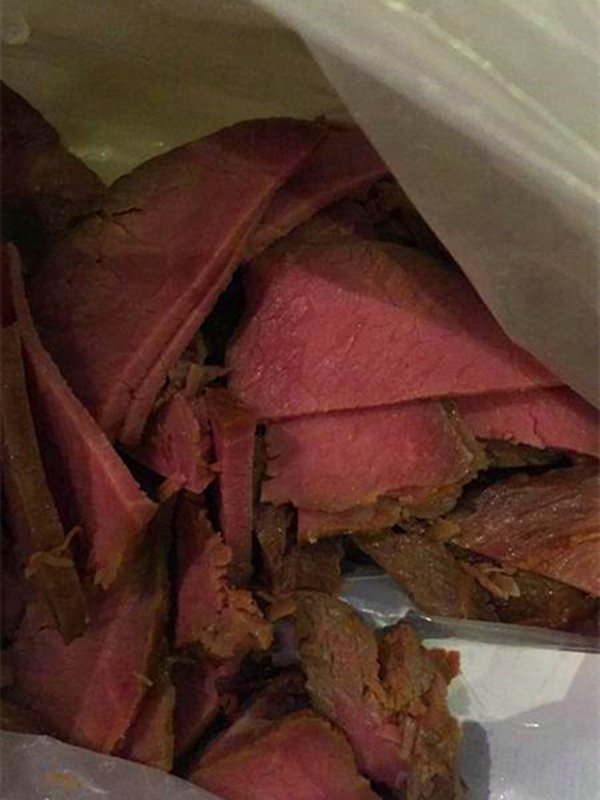 据爆料网友介绍,当天下午,自己看见超市的酱牛肉很便宜,只要20几元一斤。于是心动就购买了一块,切成小片,准备回家慢慢享用。可拿回家后,这个酱牛肉就变样了。酱牛肉闻着十分香,牛肉味十足,可吃起来口感完全不对劲,一点也没有牛肉独特的嚼劲,而且一咬就碎成渣了,完全不像牛肉。