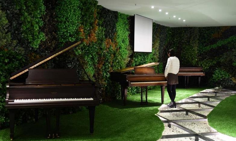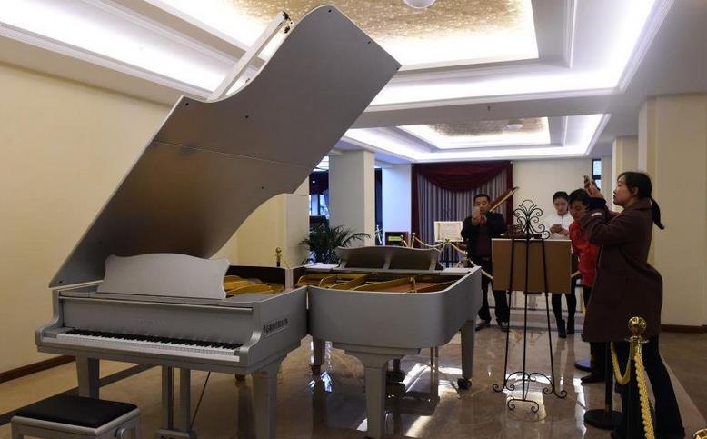 展厅展出的双子星超级钢琴吸引市民驻足拍照留念。