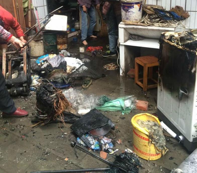 虽然消防战士扑救及时,但失火的这家居民仍然损失惨重,洗衣机等家电和家具几乎全都付之一炬。