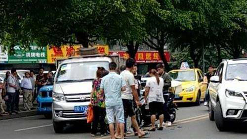 重庆小伙骑电瓶车被撞 货车司机情绪激动
