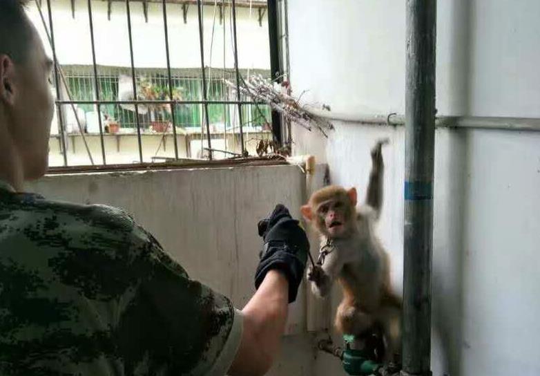 根据现场情况,消防官兵穿好灭火防护手套,防止猴子因惊慌失措咬伤消防员,然后拿着事先准备好的绳子,进入房间伺机将猴子套住。进入房间后,几名官兵先用绳子将坐在地上猴子套住,猴子开始猛烈反抗,想挣脱逃走。另一名队员见状,迅速利用事先准备好的网罩将罩住,成功将小猴捕获。
