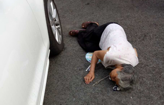 治安巡逻的老张看到了,从车上跳了下来。询问围观群众当时的情况,有人说:“你看嘛,那个老婆婆说倒就倒,躺在那个车子旁边了,都不晓得是怎么回事!”