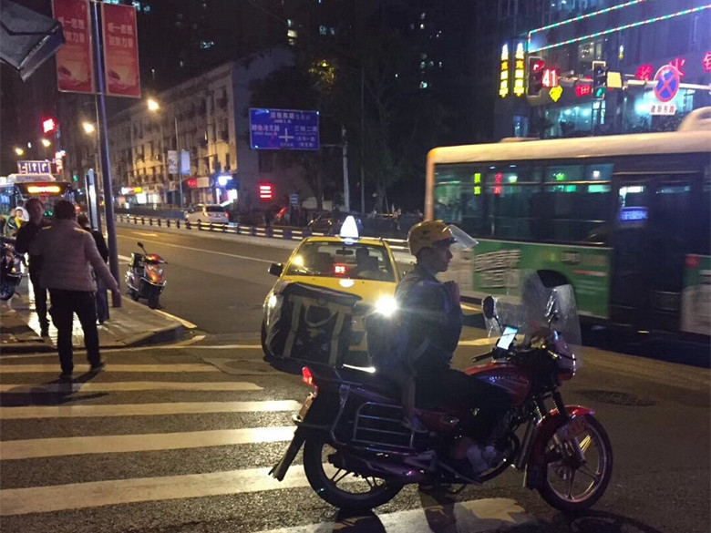 朱小姐觉得大晚上的外卖小哥带着孩子工作挺不容易,但这样对小孩来说非常的不安全。