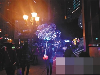 随后,记者又在商圈转了一下,最多的时候一条街五六个人都在卖网红气球,而整个商圈卖传统彩色气球只剩3个人了。