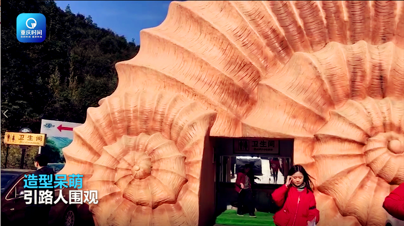 女子外出游玩偶遇“巨型蜗牛” 呆萌建筑竟是公厕