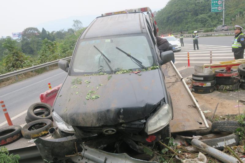 12月14日下午3点过,沪渝高速公路忠县互通处发生一起交通事故。一辆皮卡车撞上闸道口的护栏,导致车上两人受伤,其中一人受重伤。