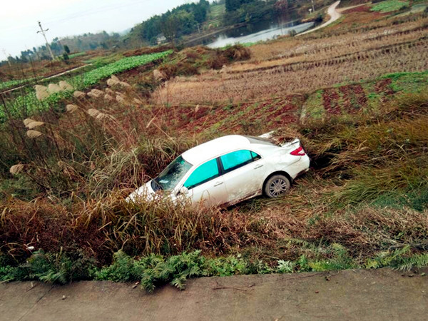 发布时间:2018-01-26 17:04:472018年1月25日,有垫江网友报料,在砚台至汪家的一条道路上,一辆私家车冲进了道路外的田地里。