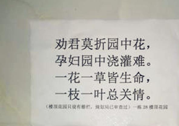 随着天气的变化,部分月季被吹断,养花这户人家似乎觉得是楼下业主人为折断,在小区楼道、电梯等公共区域,粘贴一些白纸黑字打印一些不利小区团结的语句。