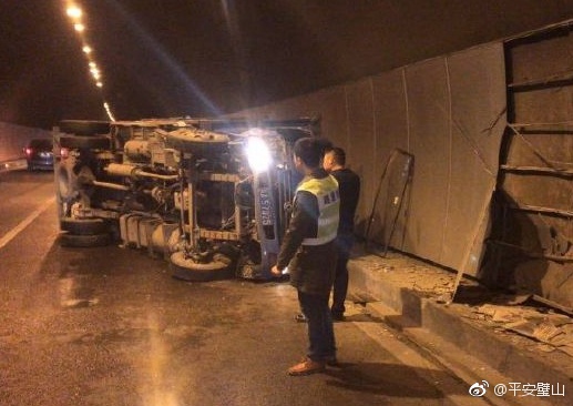 事故缘由则是因为该货车轮胎磨损严重,未及时更换,因地面湿滑,轮胎抓地力降低,造成轮胎打滑,致使车辆撞上隧道后侧翻。所幸未造成人员伤亡。