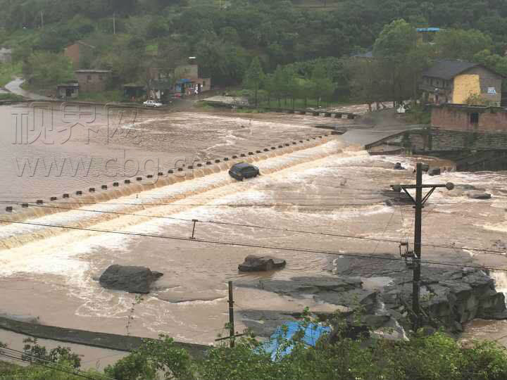 来自视界网的消息:受凌晨的暴雨影响,4月5日中午11点30分左右,重庆长寿湖镇石狮路一辆越野车被困涉水路段,交巡警和消防部门立即前往救援。
