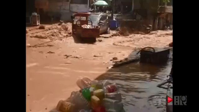 突发大水漫灌街道冲毁商铺 原来是挖掘机惹的祸