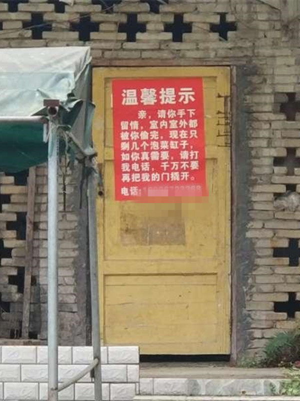 整个画风相当诙谐,能写出这样的提示,说明店主不简单呀。可是这样让小偷如何是好,究竟是手下留情,还是拨打电话?
