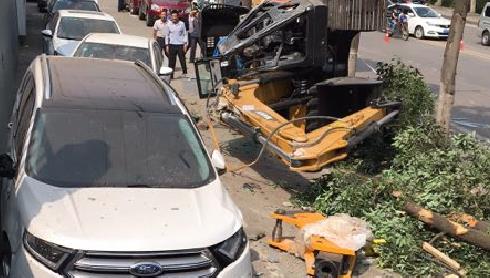“另一辆小车跟车太近,面对前面突然掉下来的挖掘机,只好一脚急刹踩下去。后头的车子来不及踩刹车,就撞了前面急停的小车。”