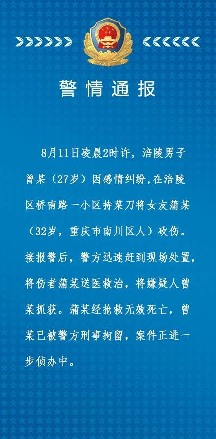 今天中午12点左右,平安涪陵官方微博发布警情通报: