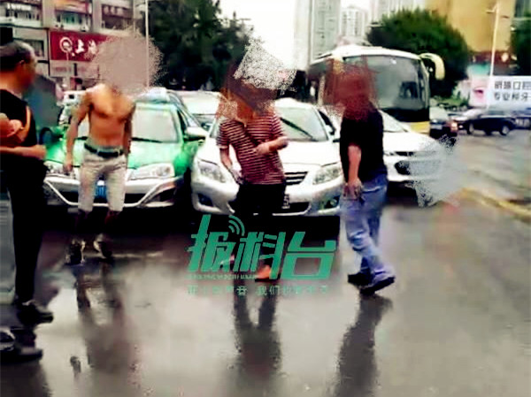 私家车出租车发生擦挂 司机竟半裸拉皮带当街开打