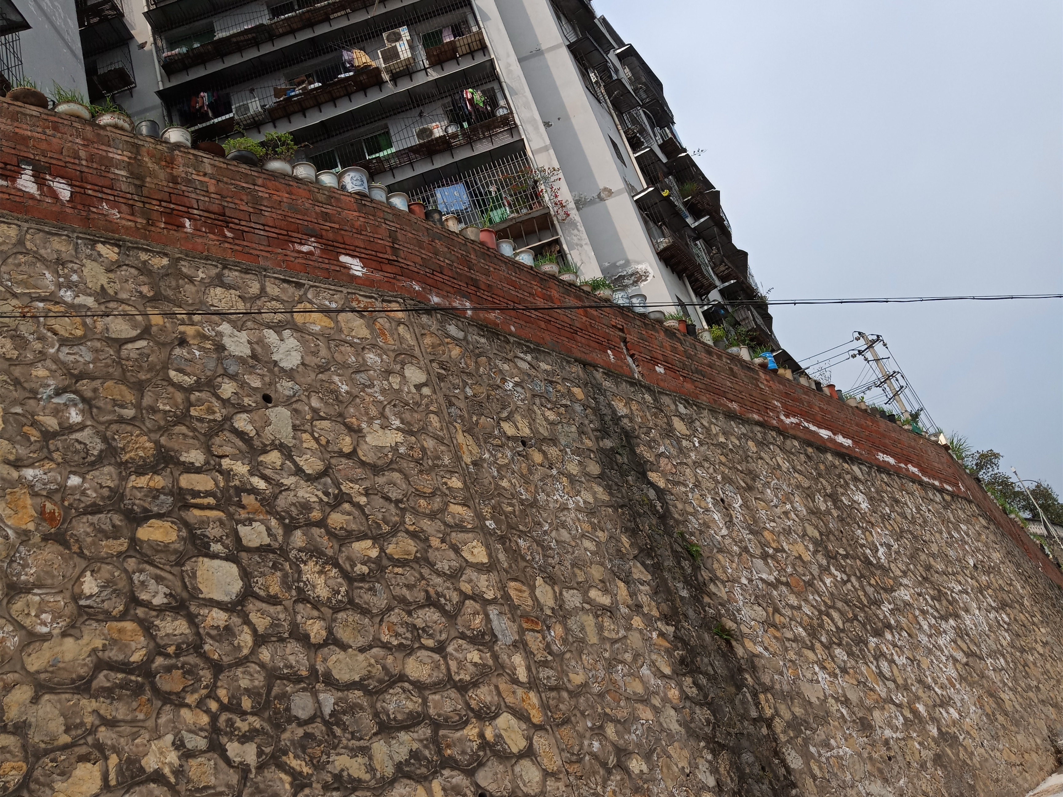 院墙外是车辆行人通过的马路,院墙内是小孩们经常玩耍的地方,如果院墙上的盆栽在下雨刮风时就会很容易跌落,有可能会砸到过往的车辆和行人。
