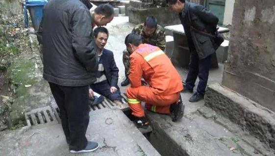 11月18日上午,大渡口一男子走路的时候只顾看手机,一脚踩空陷进了排水沟。