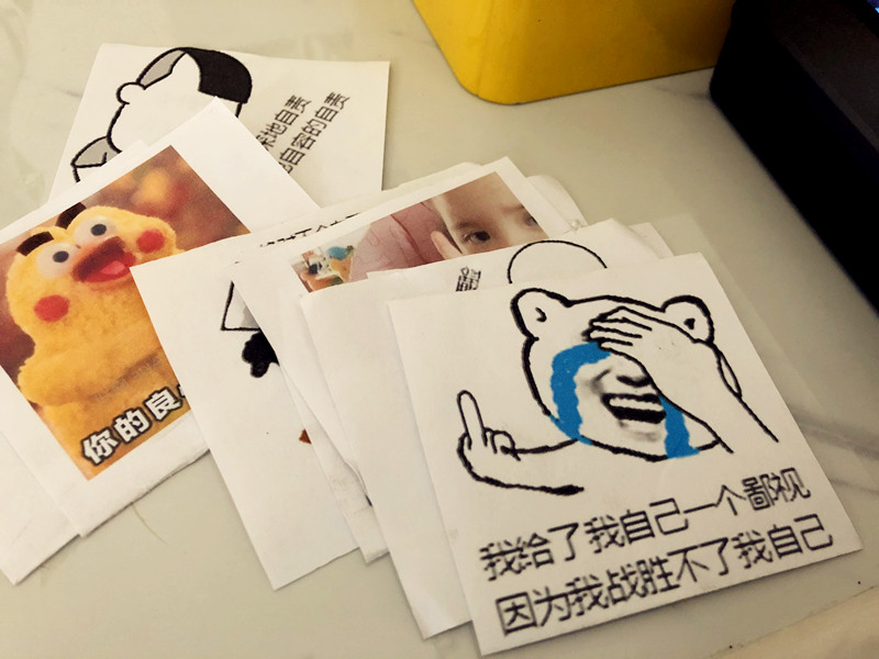 但更令唐同学意外的是,在自助罚款箱旁,还有几张彩色表情包,随手翻看了下,发现这几张表情包券都是现行比较火热的。