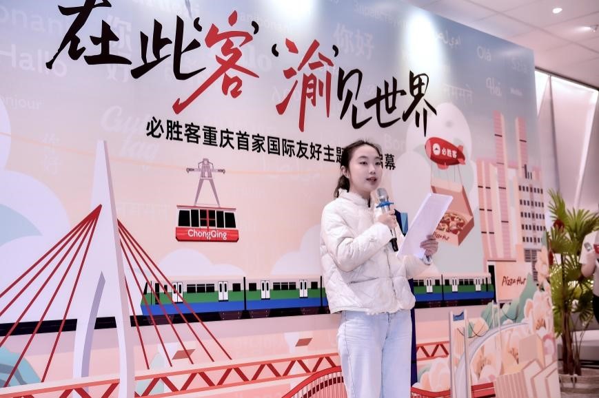 重庆市渝中区彩虹六一青年志愿者协会会长、重庆市最美志愿者、国际志愿者代表廖诗雨在分享自己在做国际志愿服务故事时讲到,在渝中区委社会工作部的指导下,千余名中外志愿者组成的队伍,已在解放碑、十八梯等城市窗口常态化开展服务,累计为超20万人次中外游客提供多语种咨询。她表示,“必胜客重庆国际友好主题餐厅”服务点的设立是一个崭新的实践阵地。未来,志愿者将以此为平台,常态化开展多语言服务与文化体验活动,努力将其打造成为中外文化交流的友好窗口与公益驿站,为传递城市温度、促进国际友好贡献志愿力量。