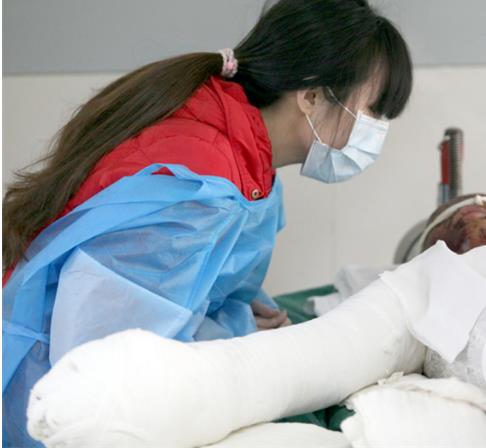 12月7日上午,佳佳被推入手术室,进行了被烧伤后的第一次手术:将双上肢被烧伤坏死的组织进行切痂,同时进行自体微粒皮移植手术。手术很顺利,连日来满面愁容的赖荣清,第一次笑了。
