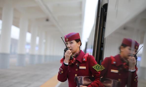 2016年12月13日,重庆,在列车达到每一个站点的时候列车长都会到站台进行巡视。
