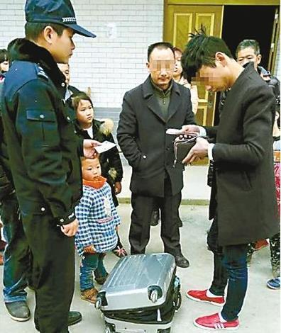 抱着最后的希望,唐先生来到高升镇派出所。民警一听,说:哎,刚才黄大爷电话报案,捡到一个行李箱。