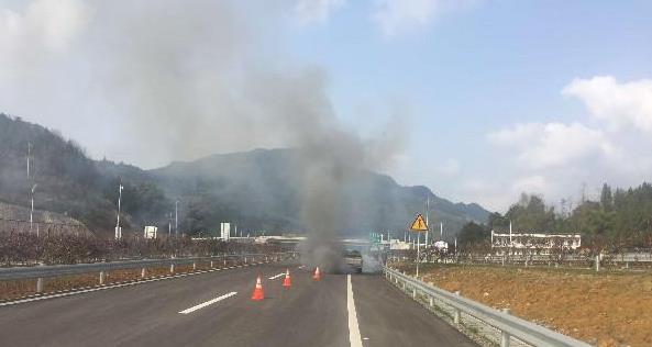 事发的时候,高速公路执法二支队二大队的巡逻车从铁门上道,向梁平西方向巡查,途径匝道时候发现过路驾驶员打开车窗大声报警,后面有车燃烧。