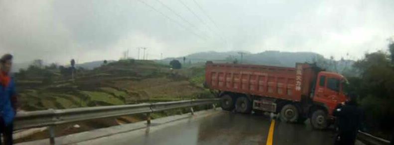 2月22日,在省道S203丰都县虎威镇路段,发生了惊险的一幕,一辆大货车在雨天行驶中突然失控,在道路中间发生了180度的极速旋转,玩起了漂移,所幸大货车前后的车辆刹车及时再加上路边防护栏的作用,才没有发生较大的事故。