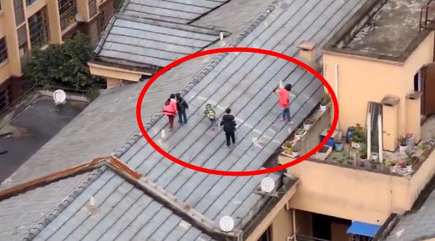 2月25日下午15时,正值周末放假,不少“熊孩子”趁家长不注意,玩得有点疯。不仅在楼顶天台翻上翻下,还爬到楼顶上行走,“像在马路上走。”这栋楼是江津区德感街道篆山坪社区邦泰花园的一栋6层高的步行楼,刚好被附近高层的市民江先生看到了这一幕,并拍了下来。