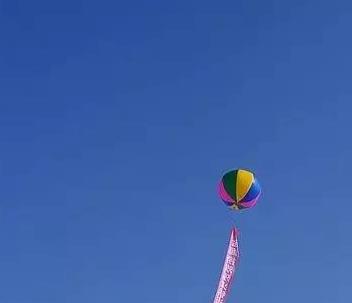 原来这是一个氢气球,如果你以为是小孩玩的氢气球就错了!实际上是这样的庆典氢气球,下面也拖着这样的横幅