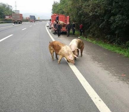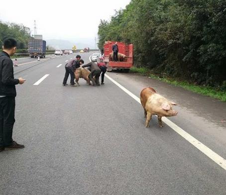 “二师兄”高速路“越狱” 执法人员当“猪倌”