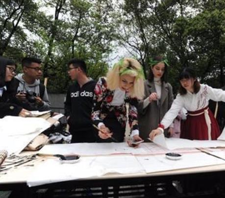 另一名留学生不熟练的拿去毛笔,在现场学生的指导下写下了自己的名字--安妮。她介绍,自己从小就喜欢中国传统文化,这次活动更是让她感受到了中国文化的博大精深,也让她了解了清明节的由来。