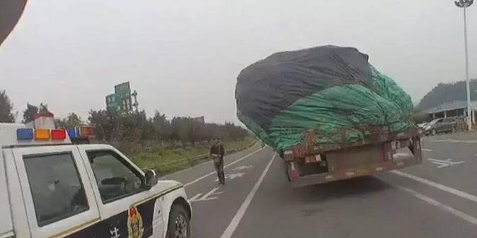 前两天,沪渝南线高速公路上发生惊险一幕,一辆挂车不顾货物严重倾斜,一路飞奔,执法人员要求现场整改时,两名驾驶员居然企图用现金贿赂执法人员。