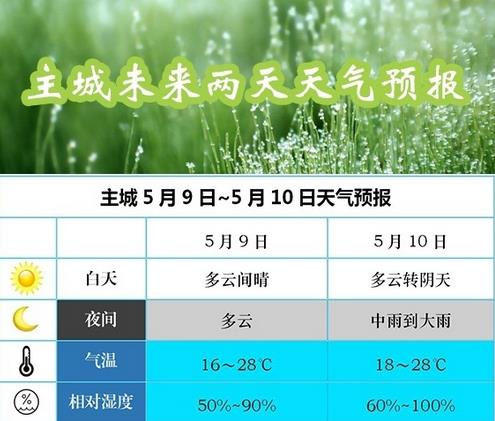 明天:东北部地区多云转阵雨或雷雨,西部偏南地区有分散阵雨或雷雨,其余地区多云转阴天,大部地区气温14~30℃;主城多云转阴天,18~28℃。