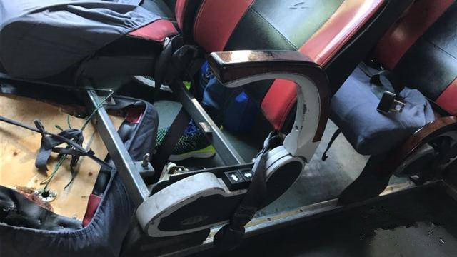 汽车座位有的坐垫掉在地上,座位只剩一个空空的洞,有的靠垫上破了一条长长的口子,还有的连安全带也扣不上。