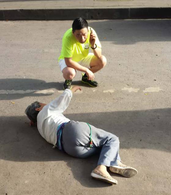 “我以为是被车撞了。”郑新春说,当时他正好晨练完回家,看见路边围了几个人,中间有个老人家躺在地上。
