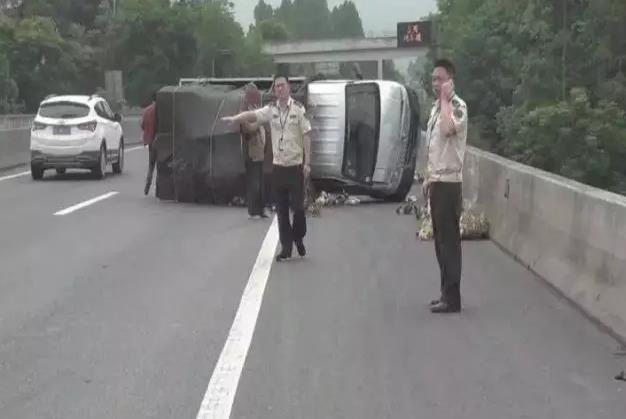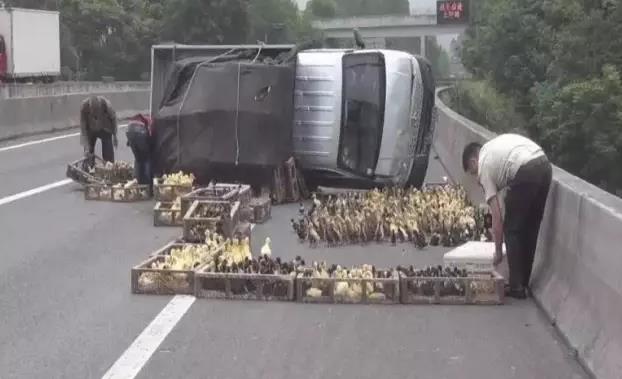 货车高速路上发生侧翻 一群小家伙趁机“越狱”